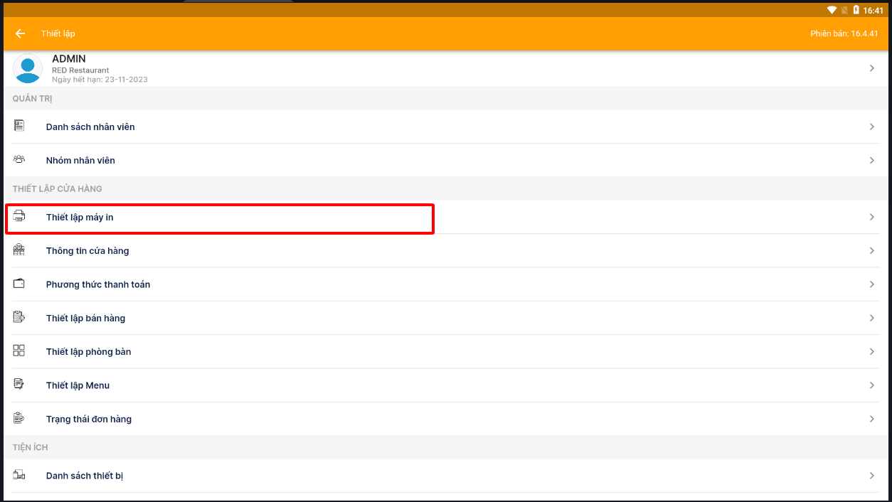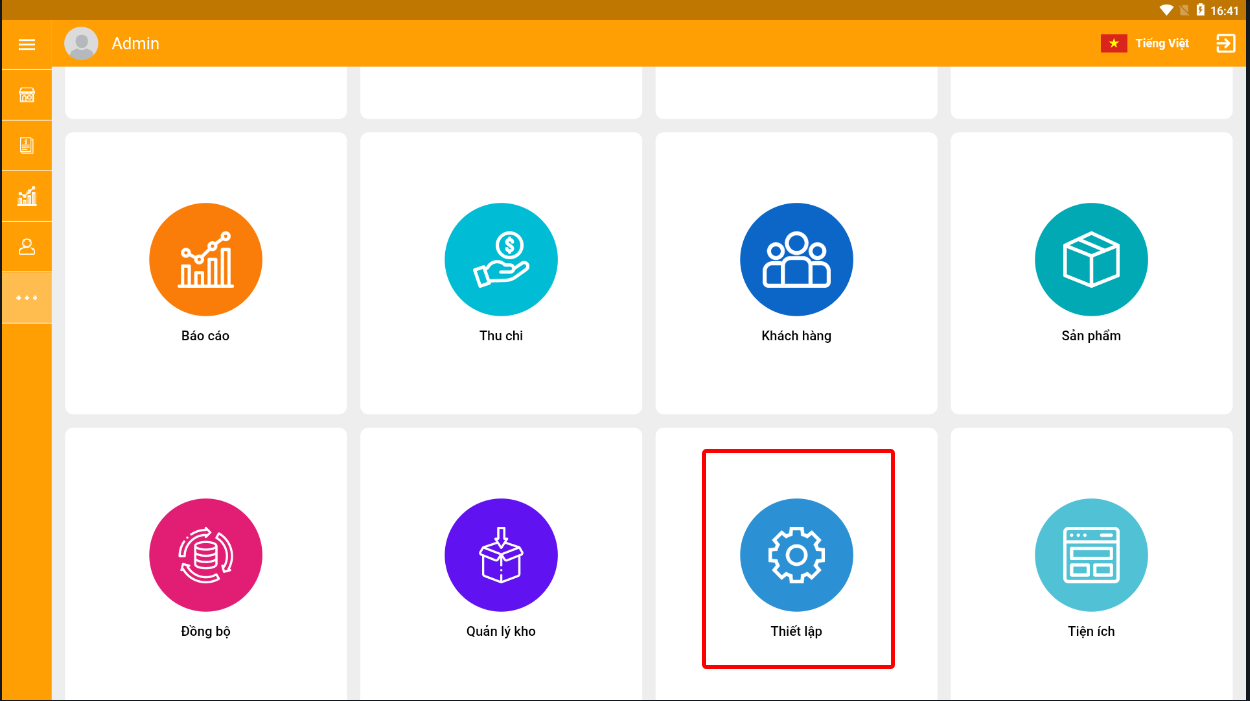 Tại giao diện app > thiết lập
