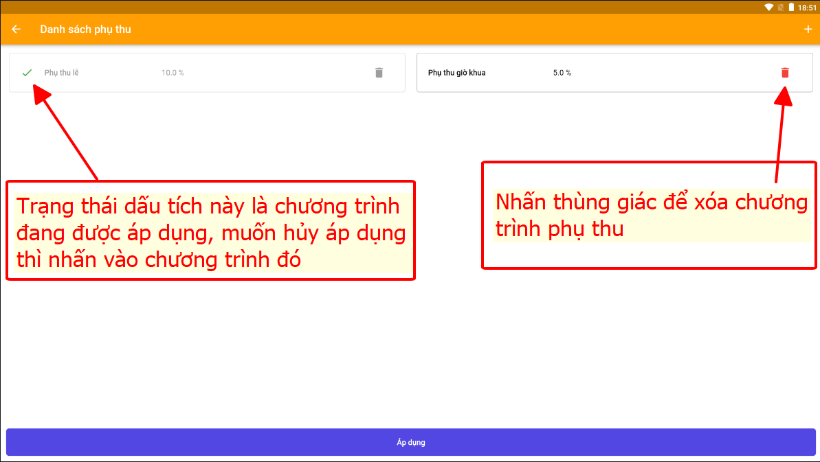 Có thể chọn nhiều chương trình cùng lúc ví dụ: ct 1 thu 10%, ct 2 thu 20%, nếu tích áp dụng cả 2 thì phụ thu sẽ là 30%
